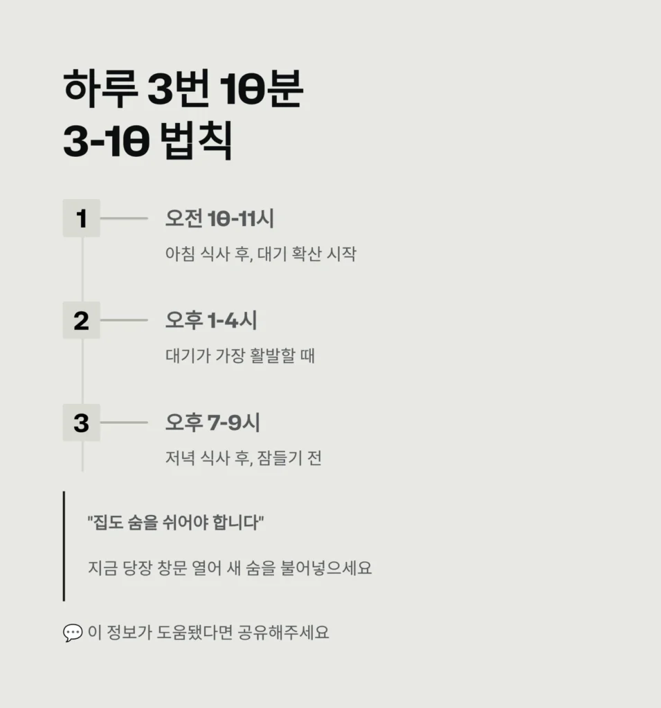 7️⃣ 최적의 환기 ‘골든타임’과 방법 요약